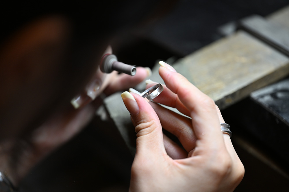 末永く愛用していただくために、サイズ直しの加工賃2年間無料、新品仕上げを永久無料で受け付けています。日常の生活でついてしまった細かな傷も、職人の手による磨き直しで、出会った日の輝きを何度でも取り戻すことが可能です。